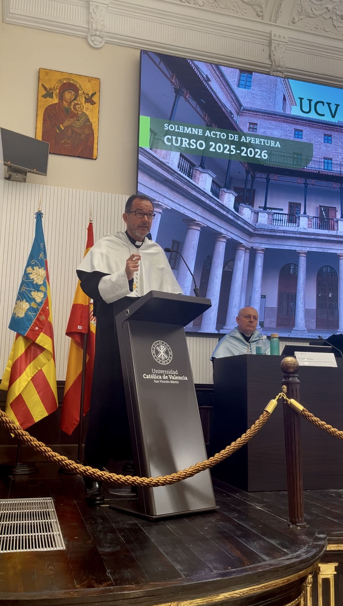 El acto contó también con la presencia del prior de la provincia de Hispania de la Orden de Predicadores, Fr. Javier Carballo; del Rector de la Universidad Católica de Valencia, D. José Manuel Pagán; y del Decano de la Facultad, D. Santiago Pons.
