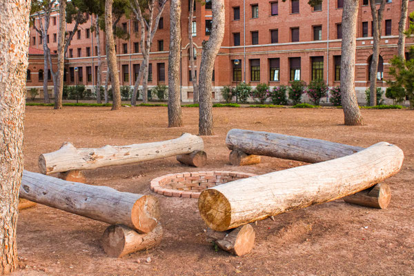 Un buen complemento a nuestras instalaciones son las zonas exteriores: una pequeña pinada, dos patios interiores con césped, una pequeña extensión con árboles frutales, jardines…